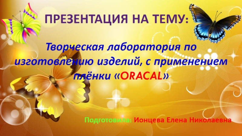Презентация, доклад на тему Творческая лаборатория по изготовлению изделий, с применением плёнки ORACAL Воспитатель Ионцева Е.Н 20.04.19