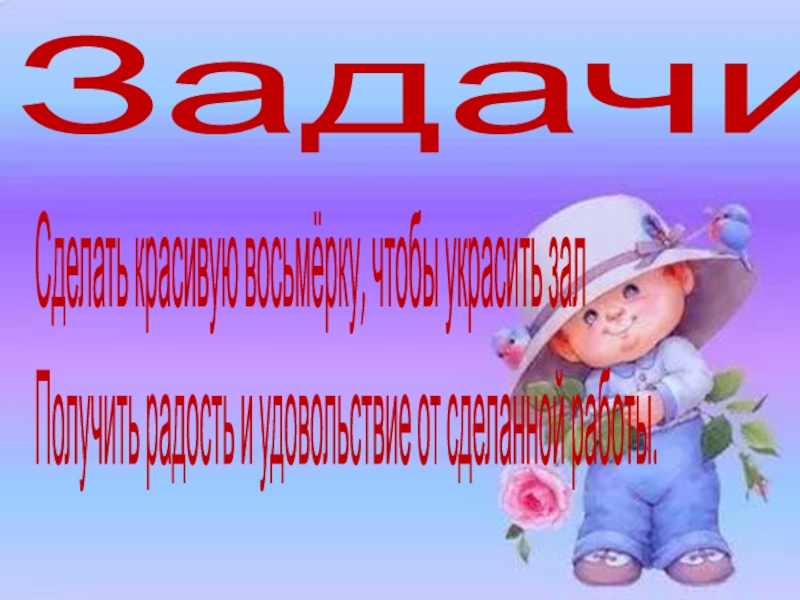 ЗадачиСделать красивую восьмёрку, чтобы украсить зал Получить радость и удовольствие от сделанной работы.