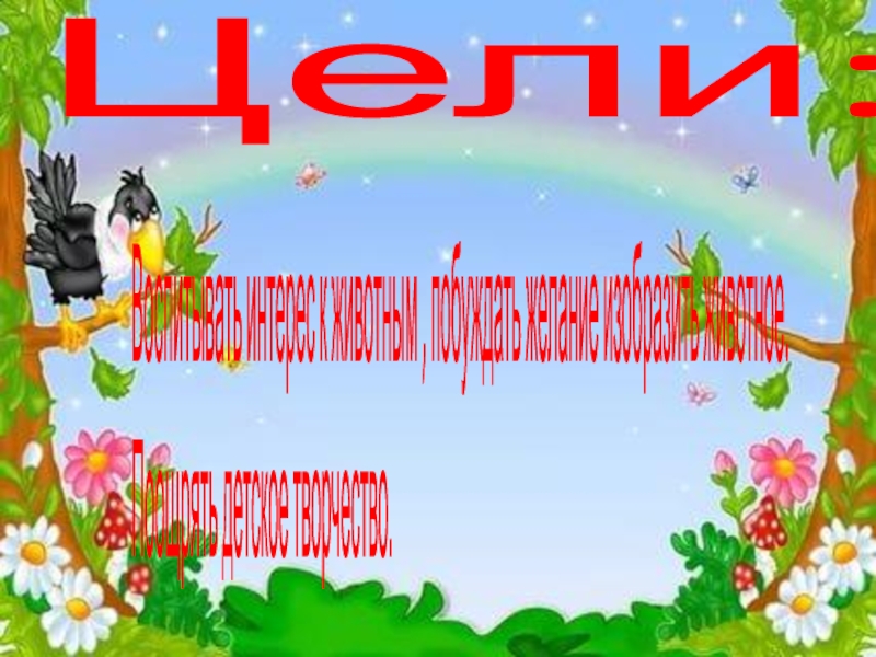 Цели:Воспитывать интерес к животным , побуждать желание изобразить животное.Поощрять детское творчество.