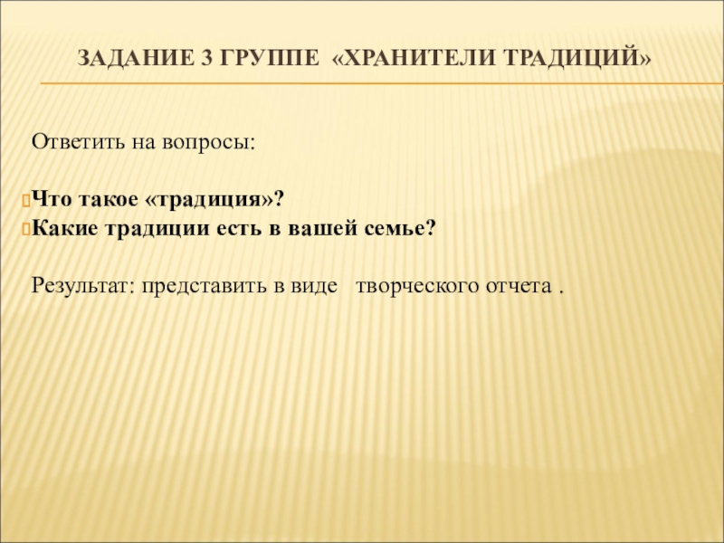 ЗАДАНИЕ 3 ГРУППЕ «ХРАНИТЕЛИ ТРАДИЦИЙ»