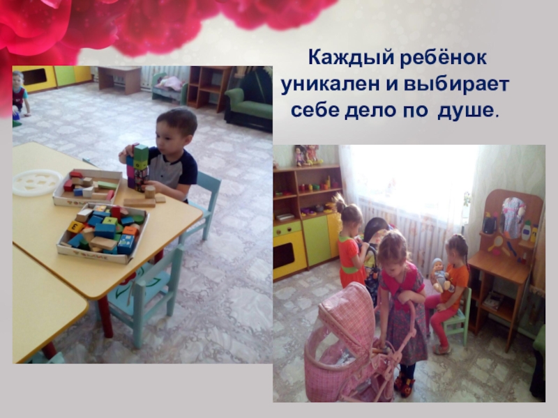 Слайд 15 Каждый ребёнок уникален и выбирает себе дело по душе.