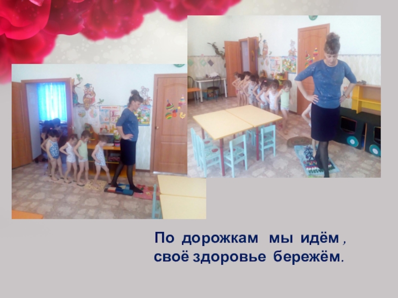 Слайд 14 По дорожкам мы идём , своё здоровье бережём.