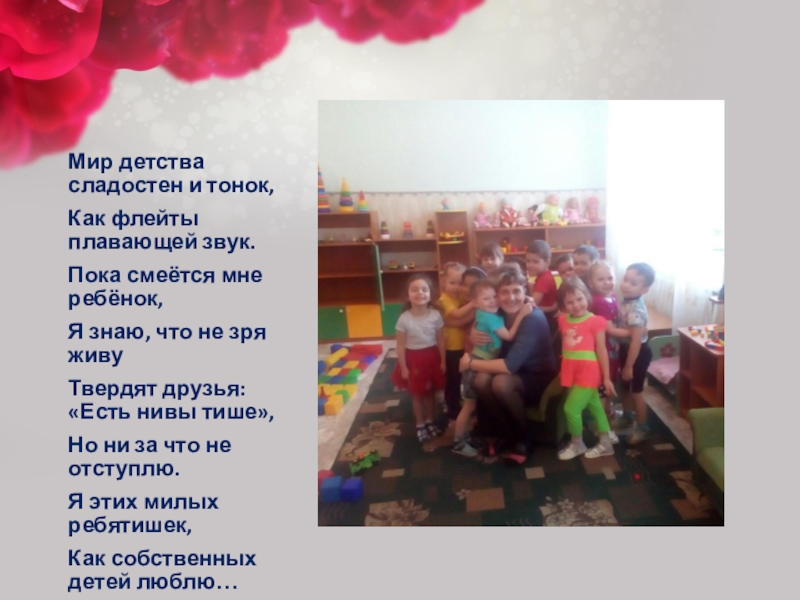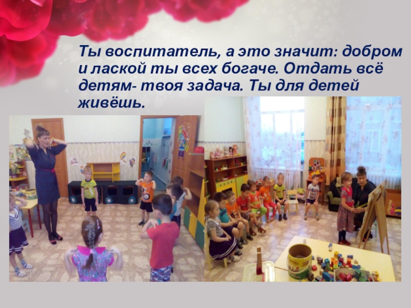 Слайд 22Ты воспитатель, а это значит: добром и лаской ты всех богаче.
