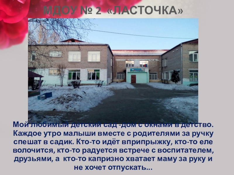 МДОУ № 2 «ЛАСТОЧКА» Мой любимый детский сад -дом с окнами в детство.  Каждое утро малыши