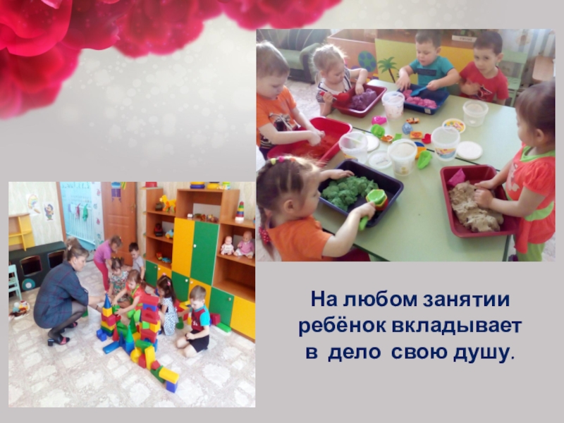Слайд 11На любом занятии ребёнок вкладывает в дело свою душу.