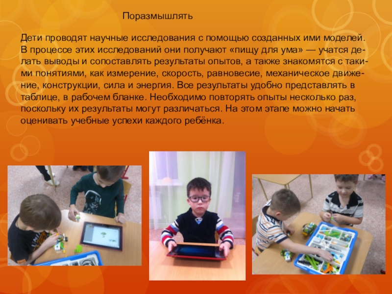 Дети проводят научные исследования с помощью созданных ими моделей. В процессе