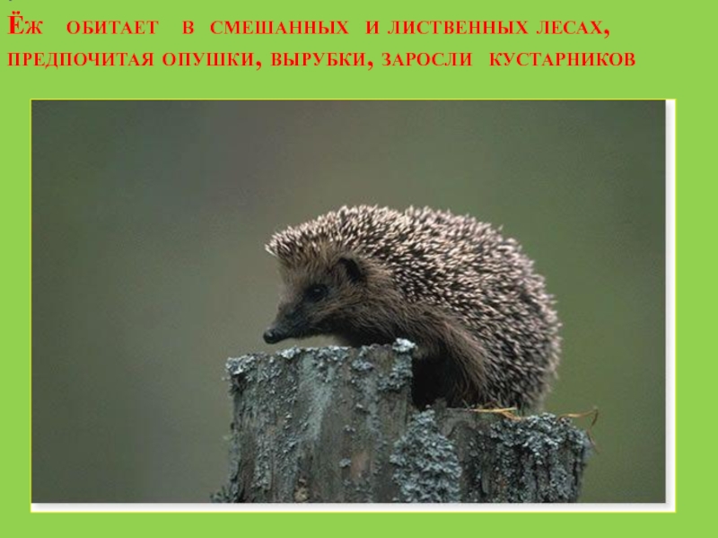 Слайд 3 . Ёж обитает в смешанных и лиственных лесах, предпочитая