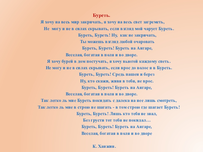Буреть, Буреть! Буреть на Ангаре,