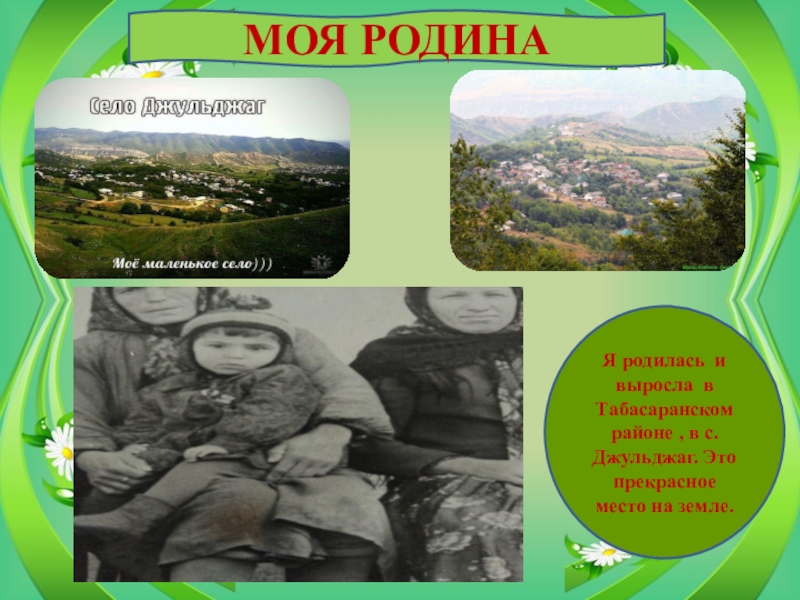 Я родилась и выросла в Табасаранском районе , в с.Джульджаг.