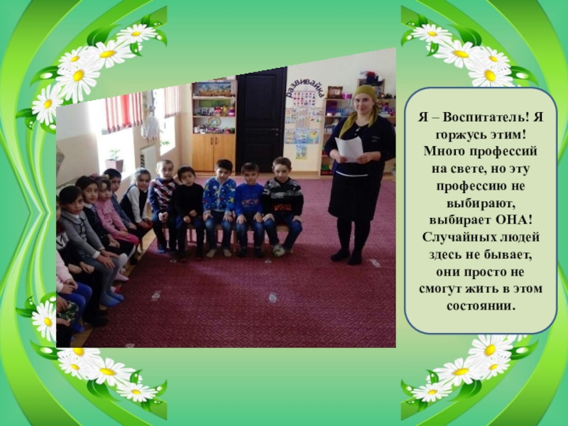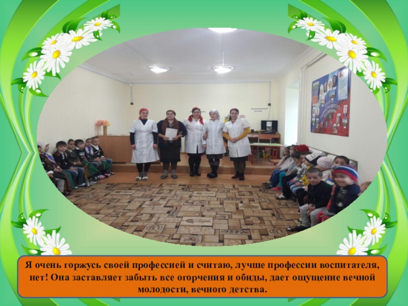 Слайд 30Я очень горжусь своей профессией и считаю, лучше профессии воспитателя, нет! Она заставляет