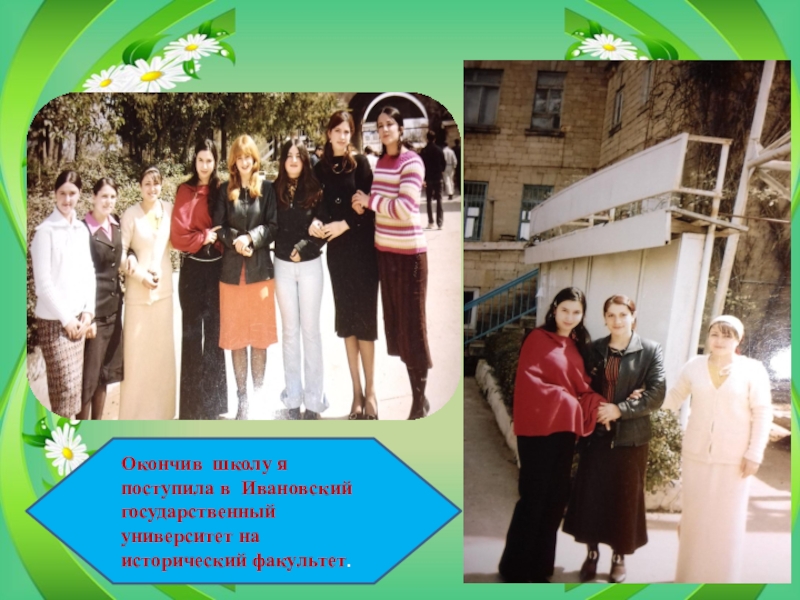 Слайд 6Окончив школу я поступила в Ивановский государственный университет на исторический факультет.