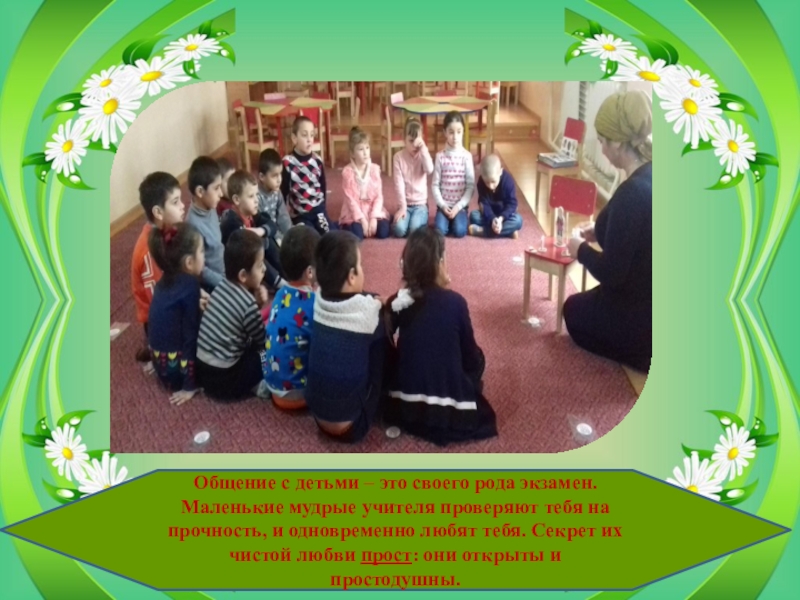 Слайд 16Общение с детьми – это своего рода экзамен. Маленькие мудрые учителя