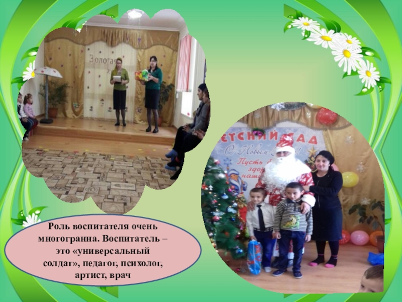 Слайд 21Роль воспитателя очень многогранна. Воспитатель – это «универсальный солдат», педагог, психолог,