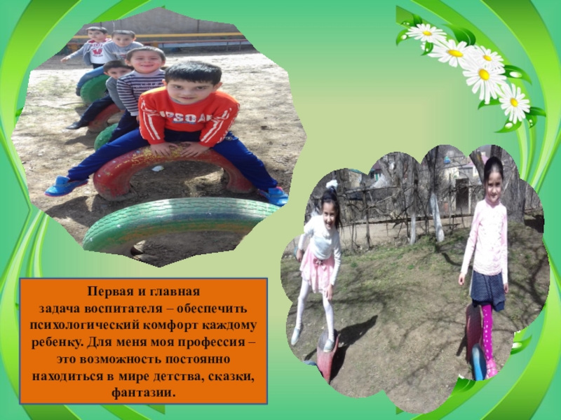 Слайд 14Первая и главная задача воспитателя – обеспечить психологический комфорт каждому ребенку. Для меня