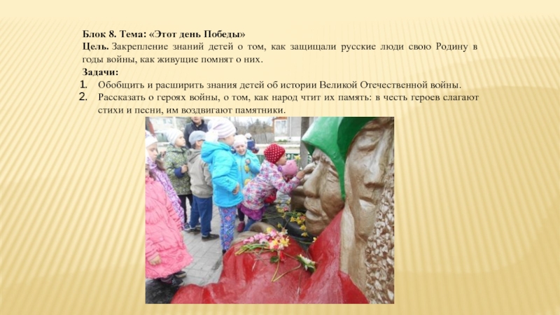 Слайд 10Блок 8. Тема: «Этот день Победы»