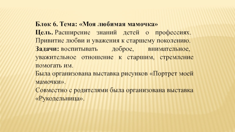 Слайд 8Блок 6. Тема: «Моя любимая мамочка»