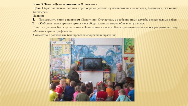 Слайд 7Блок 5. Тема: «День защитников Отечества»