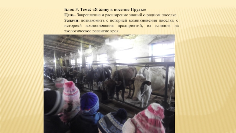 Слайд 5Блок 3. Тема: «Я живу в поселке Пруды»