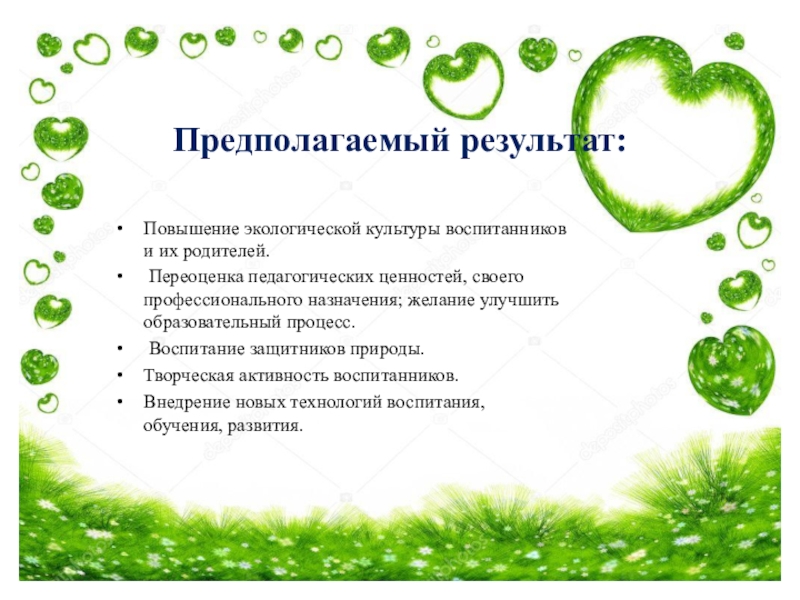 продолжать повышать свою профессиональную квалификацию и педагогическую компетентность. Формировать положительное отношение дошкольников, к природе. Освоение норм поведения в природном окружении и соблюдении их практической деятельности в быту. Воспитание защитников природы.