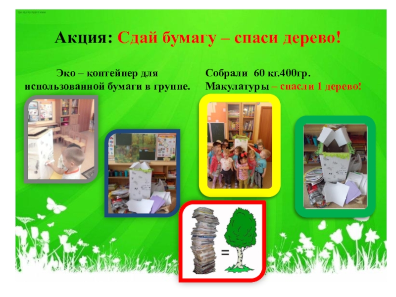 Слайд 16Акция: Сдай бумагу – спаси дерево!