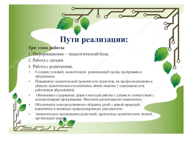 Создание условий, экологизации развивающей среды, программное обеспечение.