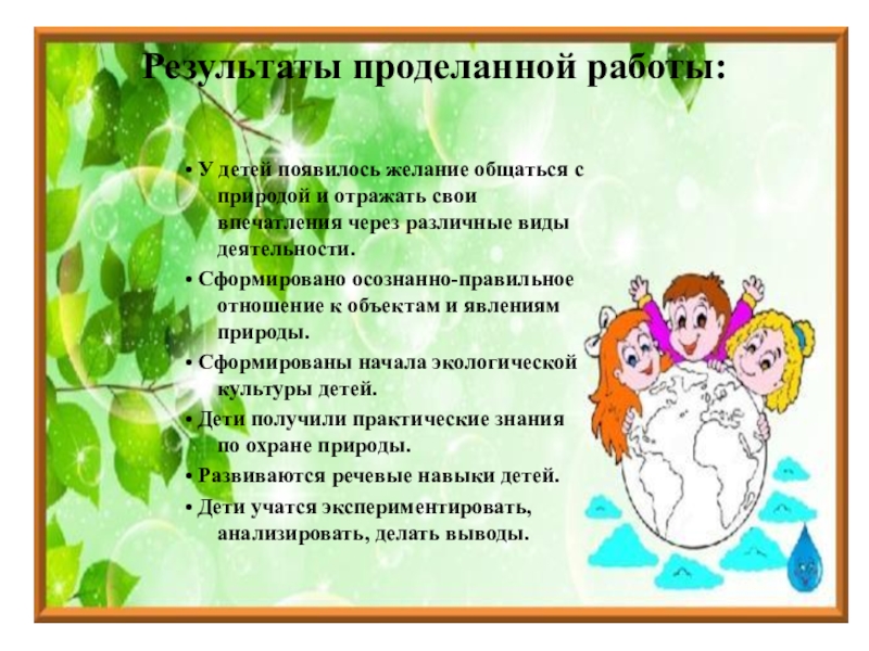 • Дети учатся экспериментировать, анализировать, делать выводы.