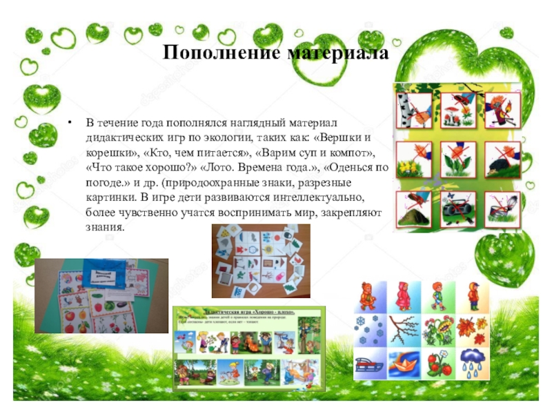 В течение года пополнялся наглядный материал дидактических игр по экологии,