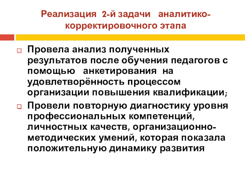 Слайд 21Реализация 2-й задачи аналитико-корректировочного этапа