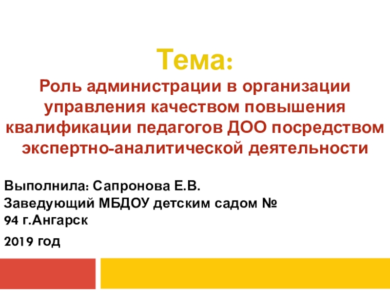 Слайд 1Выполнила: Сапронова Е.В. Заведующий МБДОУ детским садом № 94 г.Ангарск