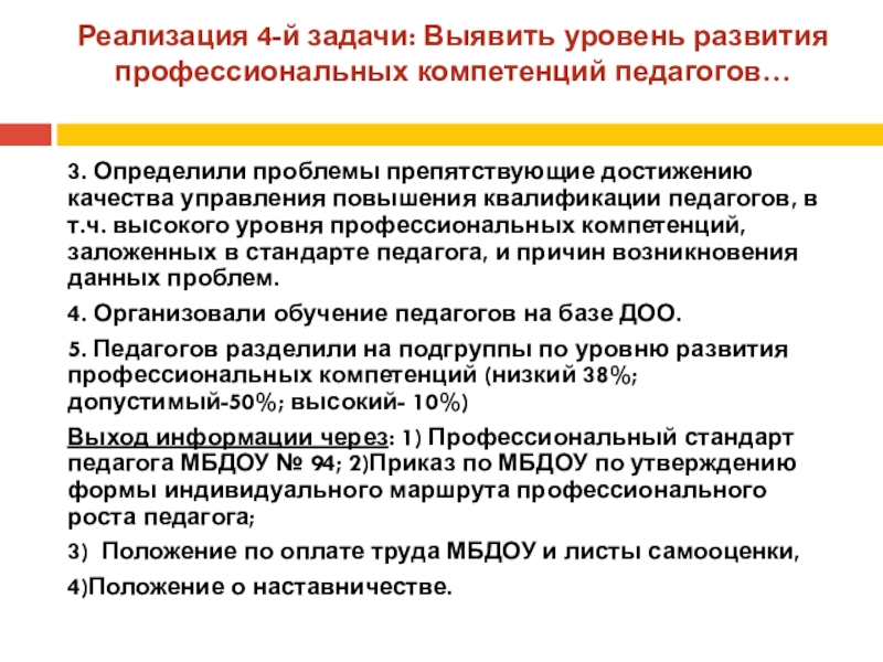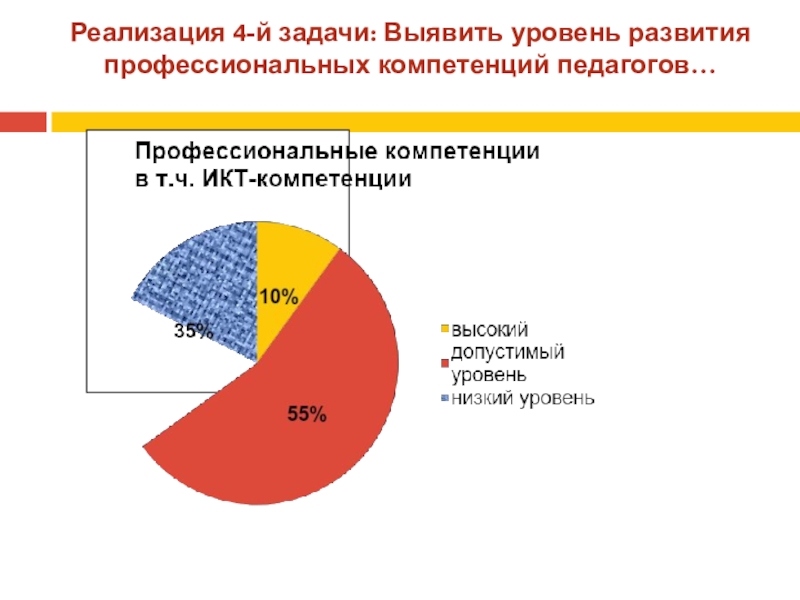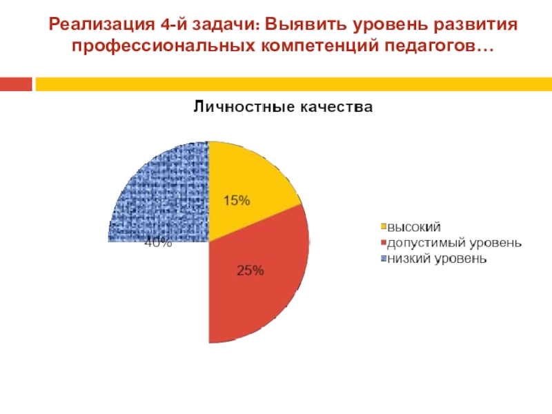 Слайд 16Реализация 4-й задачи: Выявить уровень развития профессиональных компетенций педагогов…