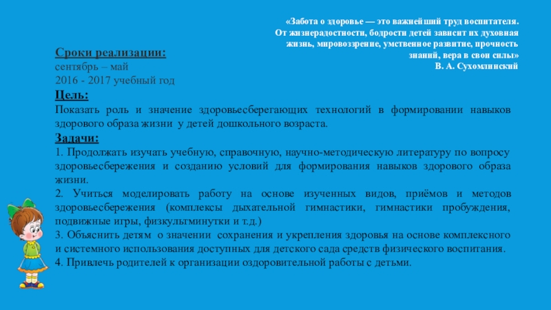 От жизнерадостности, бодрости детей зависит их духовная жизнь, мировоззрение, умственное развитие, прочность знаний, вера в свои силы»