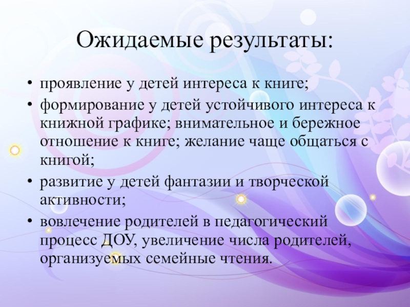вовлечение родителей в педагогический процесс ДОУ, увеличение числа родителей, организуемых семейные чтения.