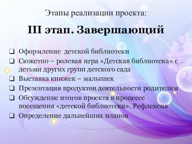 Обсуждение итогов проекта в процессе посещения «детской библиотеки». Рефлексия