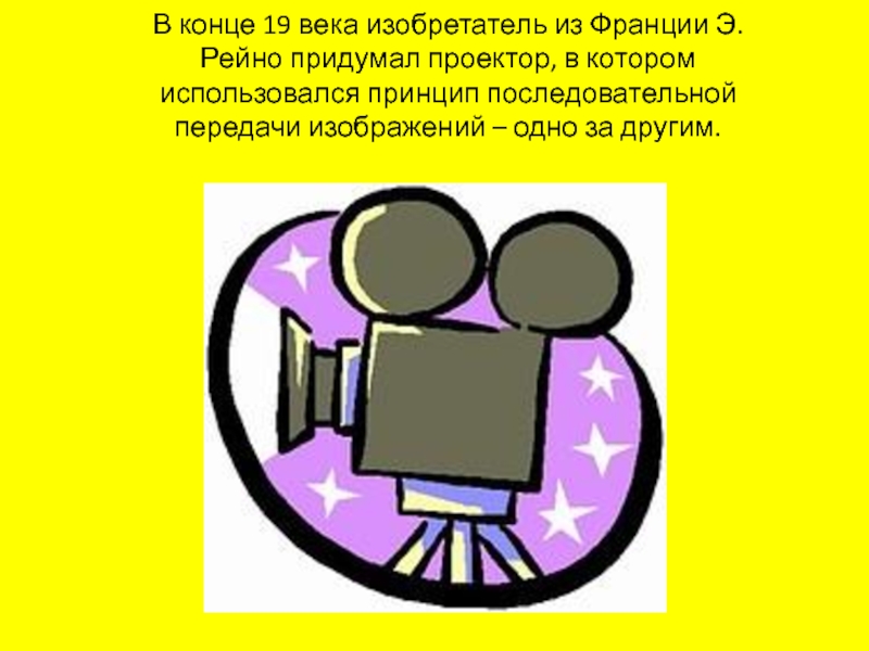 Слайд 7В конце 19 века изобретатель из Франции Э. Рейно придумал проектор,