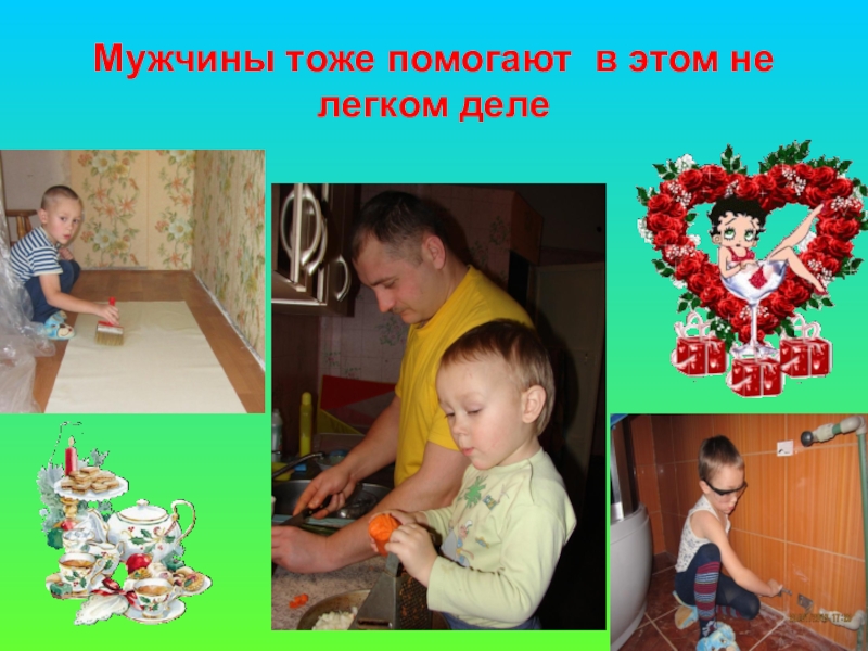 Слайд 5Мужчины тоже помогают в этом не легком деле