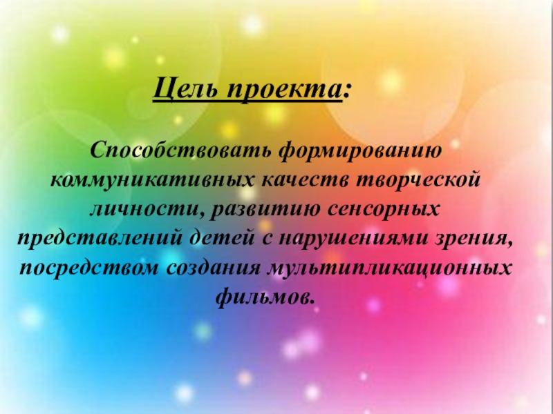 Лепка обеспечивает положительное влияние на психоэмоциональную сферу ребенка и развивает тактильно-мнемическую чувствительность и мелкую моторику рук, еще немало важным аспектом служит передача пространственных соотношений предметов в лепке— объекты, как в реальной жизни, расставляются друг за другом, ближе и дальше от центра композиции, формирует зрительное восприятие, что очень необходимо для детей с нарушениями зрения. Но как оживить пластилиновых героев? Здесь и приходят на помощь мультипликационные технологии. Создавая и « оживляя» героев мультфильма, ребята учатся определять и передавать настроение персонажей, задумываются о смысле поступков и о стоящих за ними переживаниях. Это делает детей более наблюдательными, внимательными к окружающим людям, ребята лучше понимают друг друга, активно используют мимику и пластику при выражении мыслей и чувств.