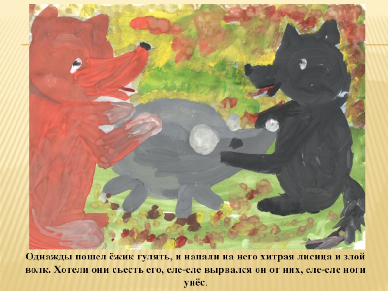 Слайд 4Однажды пошел ёжик гулять, и напали на него хитрая лисица и