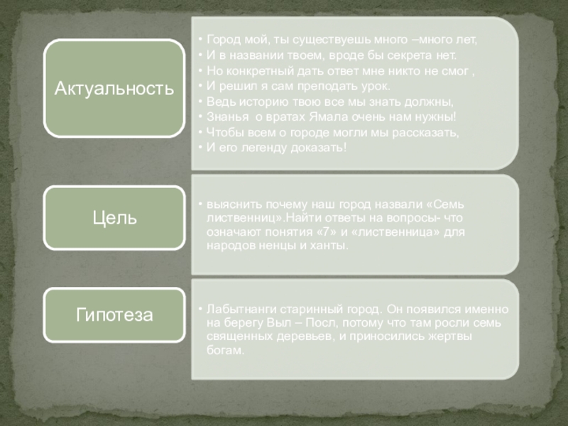 Презентация, доклад на тему Творческий проект ученицы Загадочное название Лабытнанги