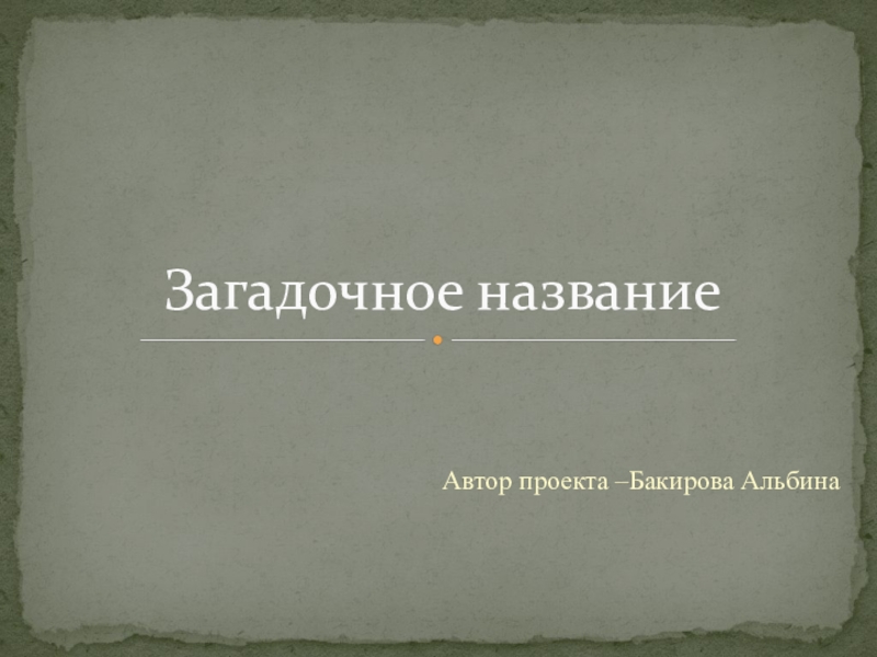 Автор проекта –Бакирова АльбинаЗагадочное название