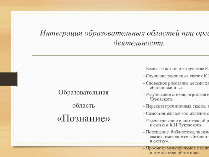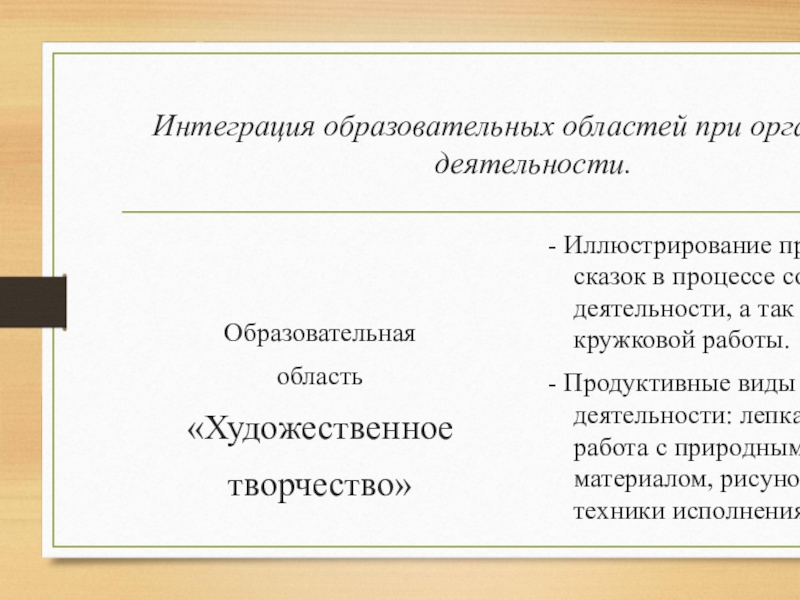Слайд 17Интеграция образовательных областей при организации деятельности.
