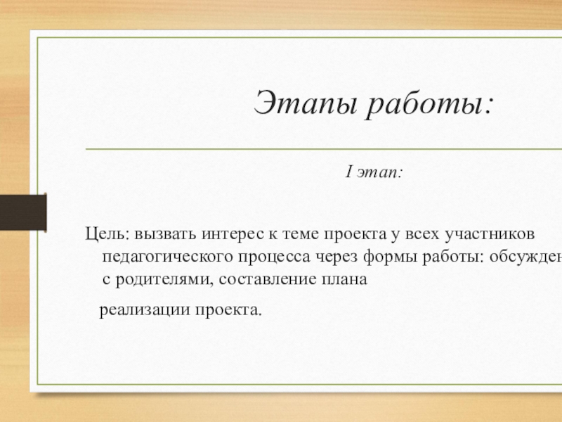 всех участников педагогического процесса через формы работы: обсуждение проекта с родителями, составление плана