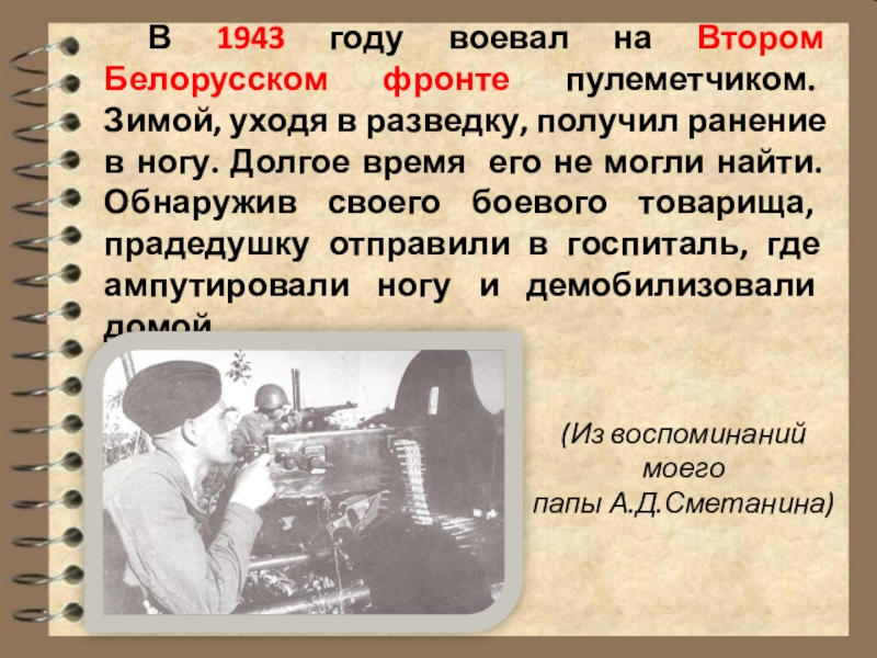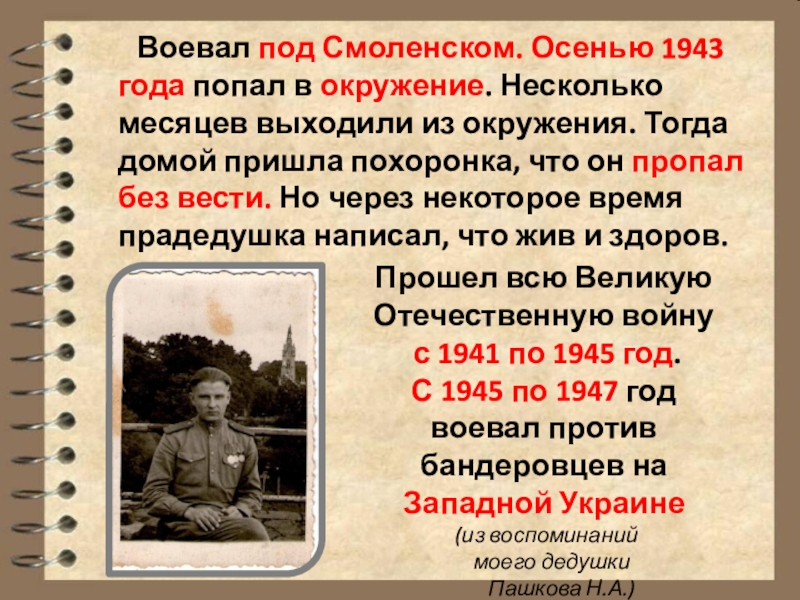 С 1945 по 1947 год воевал против бандеровцев на Западной Украине