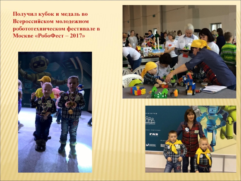 Слайд 18Получил кубок и медаль во Всероссийском молодежном робототехническом фестивале в Москве