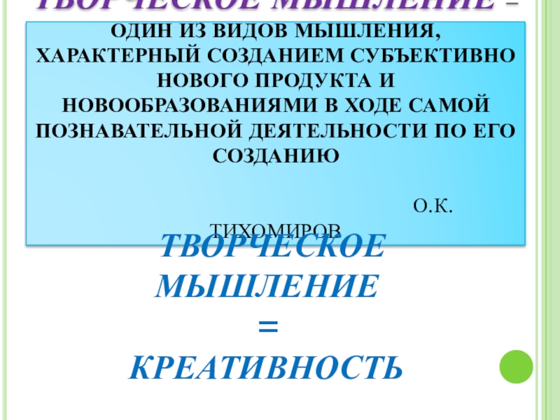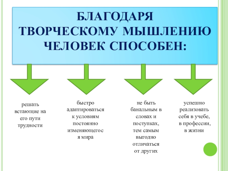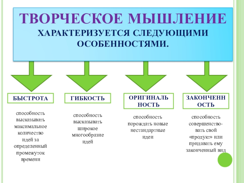 ТВОРЧЕСКОЕ МЫШЛЕНИЕ ХАРАКТЕРИЗУЕТСЯ СЛЕДУЮЩИМИ ОСОБЕННОСТЯМИ.