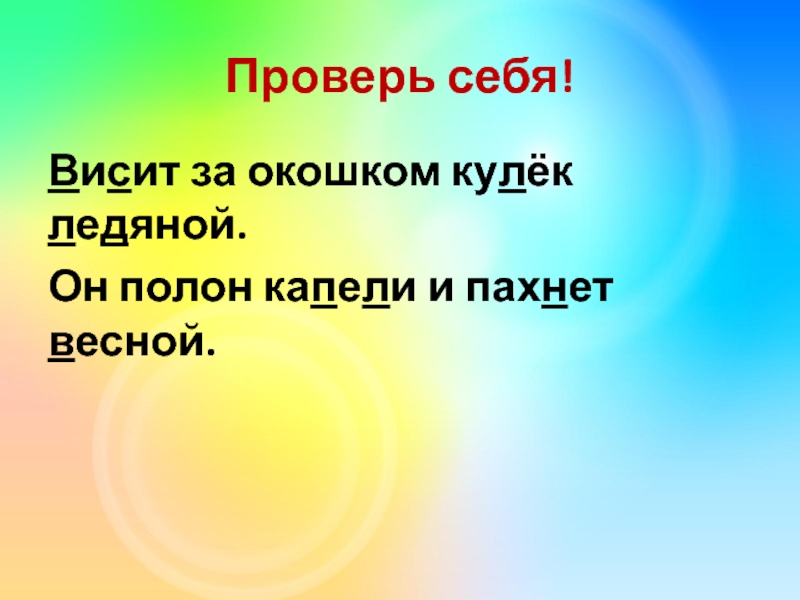 Проверь себя!Висит за окошком кулёк ледяной.Он полон капели и пахнет весной.