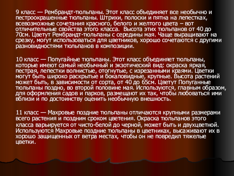 9 класс — Рембрандт-тюльпаны. Этот класс объединяет все необычно