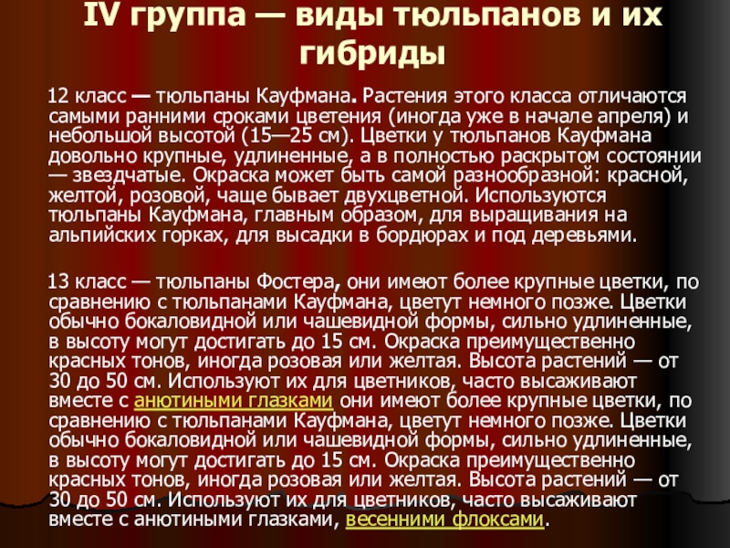 Слайд 16IV группа — виды тюльпанов и их гибриды