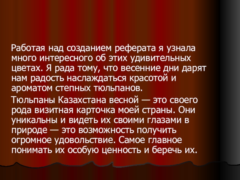 этих удивительных цветах. Я рада тому, что весенние дни дарят нам радость наслаждаться красотой и ароматом степных тюльпанов.