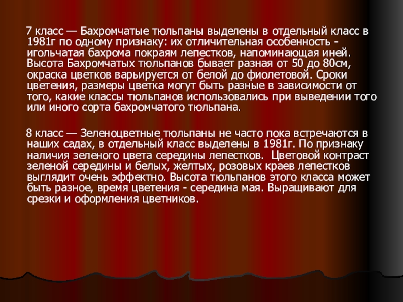 7 класс — Бахромчатые тюльпаны выделены в отдельный класс в 1981г