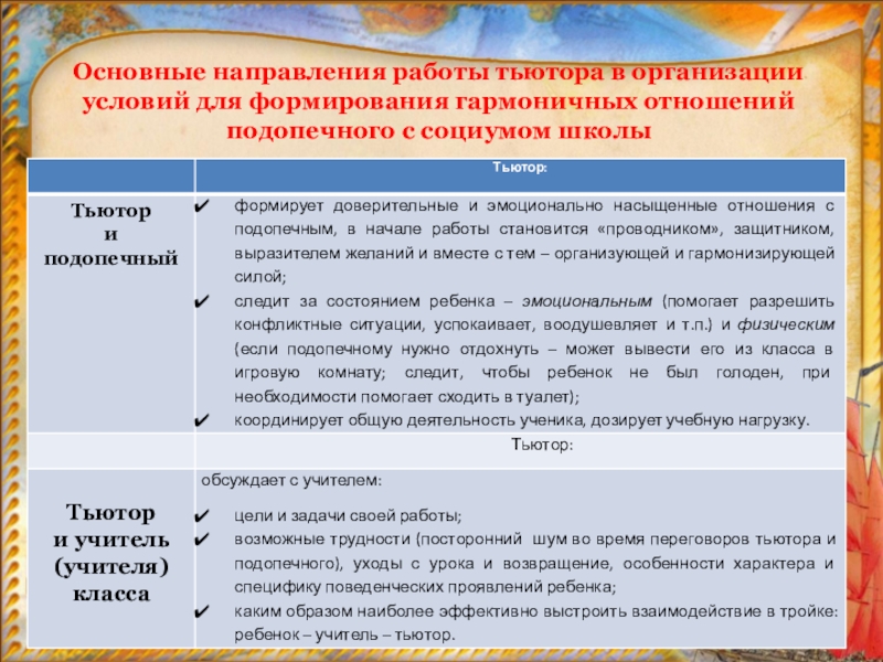 Должностные обязанности тьютора:
